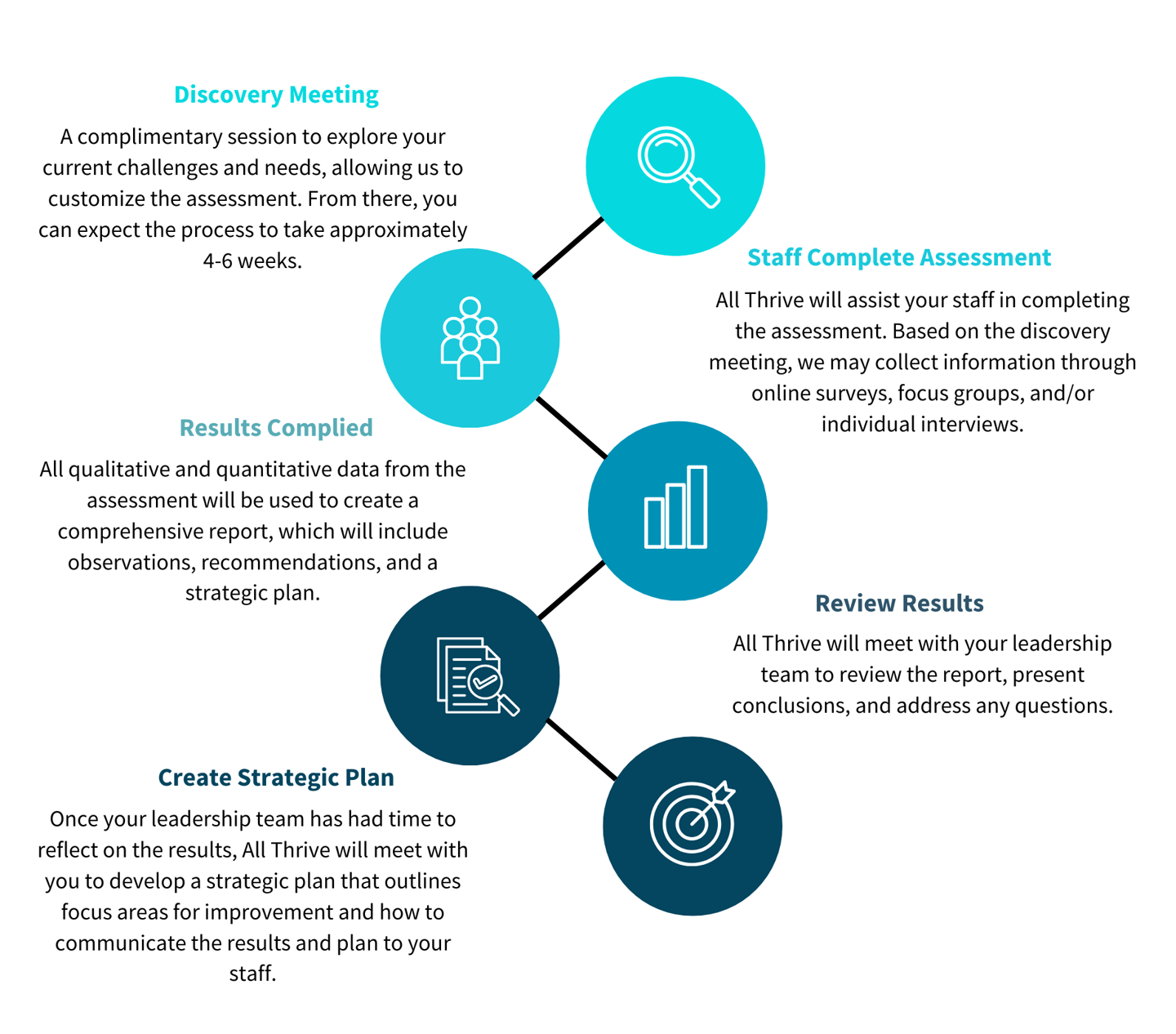 Recognizing this, the Mental Health Commission of Canada developed the Standard for Psychological Health and Safety in the Workplace to help organizations create mentally healthy environments. Using this standard, All Thrive created an assessment that will give organizations a comprehensive perspective of how their workplace culture is impacting the mental health of employees.